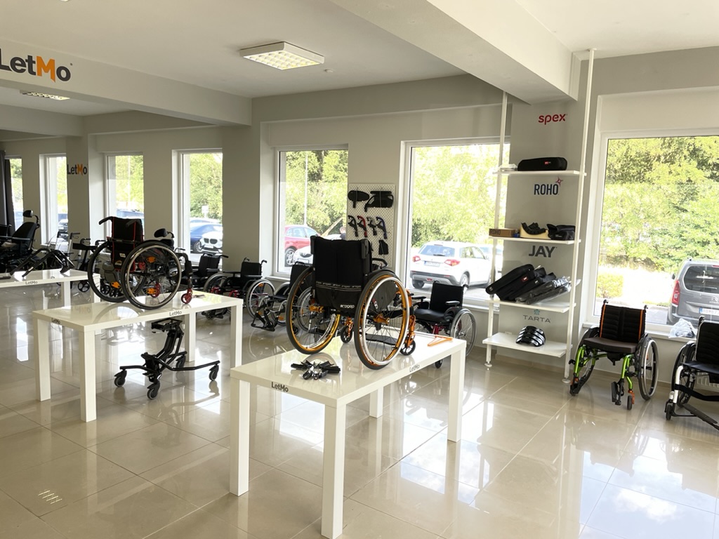 Na 340 štvorcových metroch predstavujeme všetko, čo vnímame pod pojmom komplexný sortiment pre vozičkára. Samozrejme väčšinu zaujímajú mechanické a elektrické vozíky Quickie, Progeo a Permobil, ale príjemným doplnkom je aj kompletný antidekubitný program značiek JAY, Roho, Spex a Tarta.