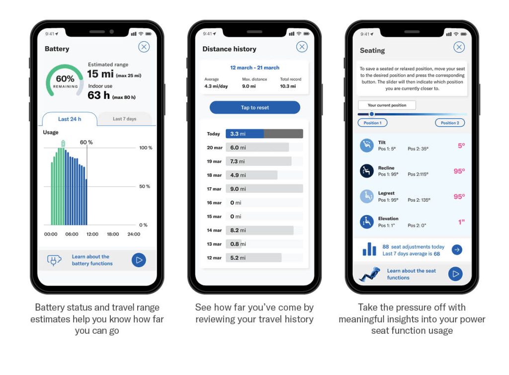 Stiahnite si aplikáciu MyPermobil, aby ste získali prístup k vylepšeným informáciám o výkone a používaní a mohli naplno využívať svoj elektrický invalidný vozík Permobil.