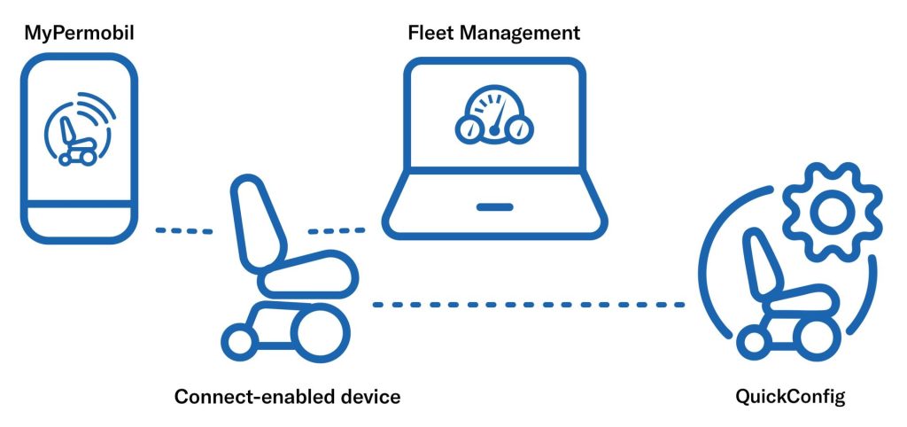 (MyPermobil môže vyžadovať dodatočné hardvérové vybavenie na vašom elektrickom invalidnom vozíku.)