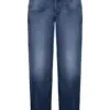 Materiál: 11,5 oz modrá džínsovina s 2% lykrou a dvojitou pružnosťou. Kráľovská modrá indigo džínsovina s jemne obnoseným vzhľadom.