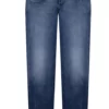 Materiál: 11,5 oz modrá džínsovina s 2% lykrou a dvojitou pružnosťou. Kráľovská modrá indigo džínsovina s jemne obnoseným vzhľadom.