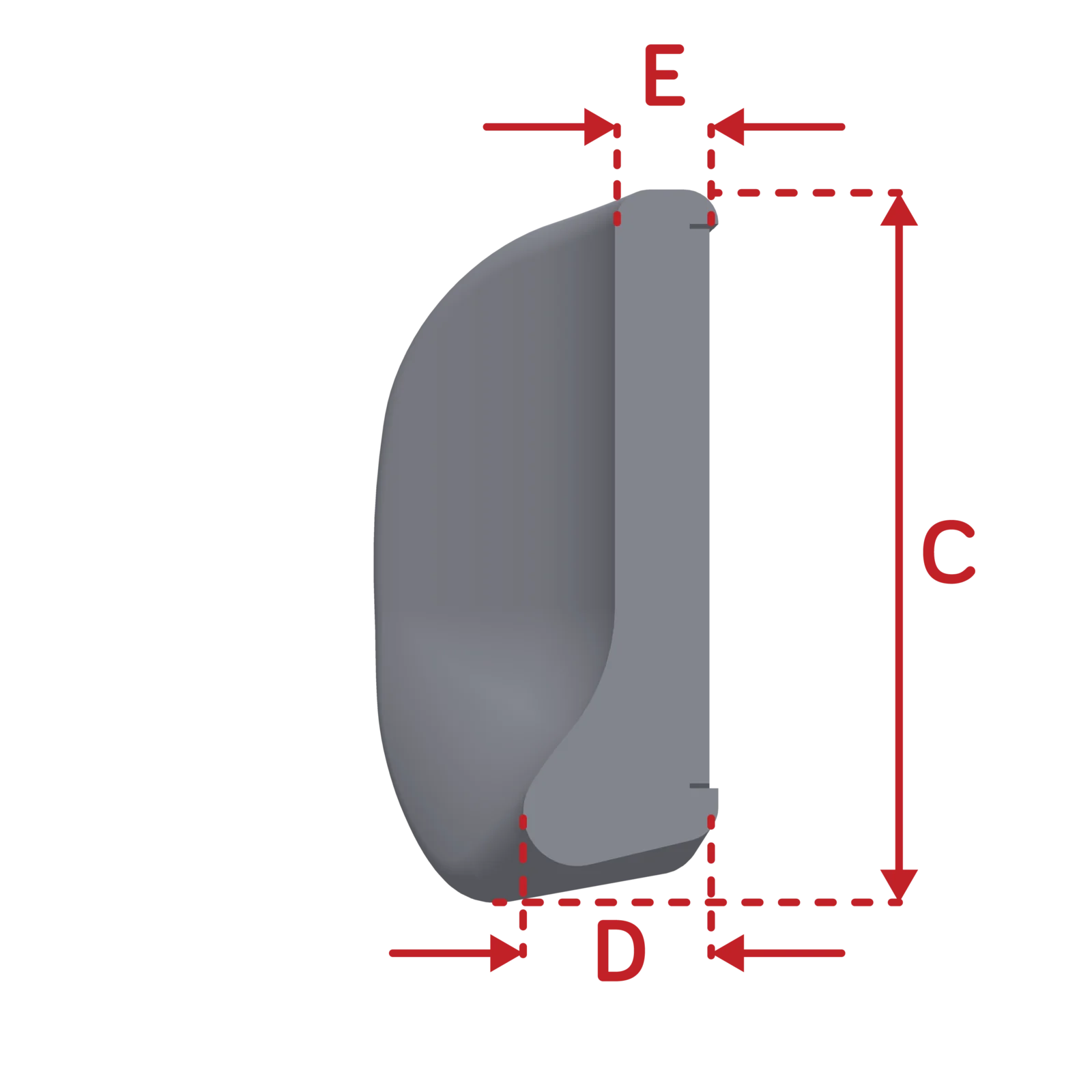| Typ | Označenie | Šírka (A) | Hĺbka (B) | Výška (C) | Spodná hrúbka (D) | Vrchná hrúbka (E) |